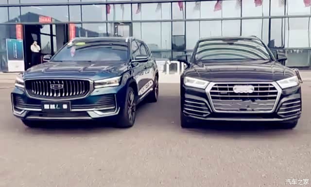 最近,有车主故意把吉利星越L停在了奥迪Q5L边上,想要对比一下这两款车的外观,看看哪一款更加霸气。