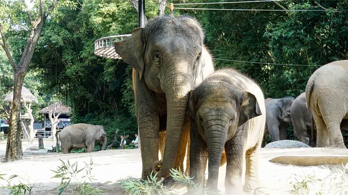 出了侏罗纪森林是金蛇秘境,有假蛇搭建的场景,也有真蛇。恐龙和蛇占据了青龙山的地位,剩下还有一些鸟类和猿类。