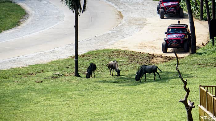 最后一个表演是在缆车上看的,这个地方叫做非洲草原线:一大片空旷的草地区域,视野变得非常好,从缆车上看下方悠闲的动物们,感觉开启了上帝视角,哈哈。