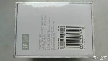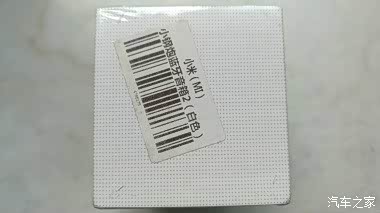小米小钢炮蓝牙音箱包装盒正面印有条形码和贴有汽车之家橙色标签