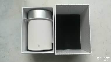 打开包装盒上盖就能看见小米音箱包装盒上下都有黑色软泡沫垫保护,在银色旋钮开关与白色箱体之间还有一橡胶保护圈,,使用时要将此保护圈取掉