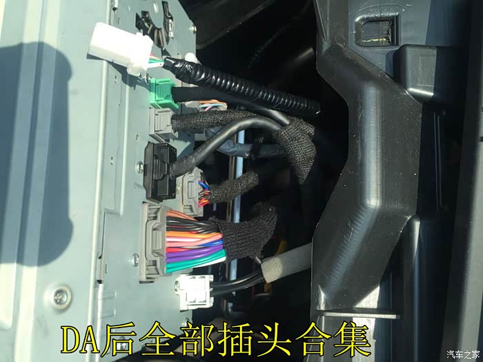 最右下角的插头:这个就是低配收音机后面的插头,跟DA屏对插上即可!这个插头上有一根线,如果不断开,手刹会一直报警。(自己装DA手刹报警的同学注意此处了!)