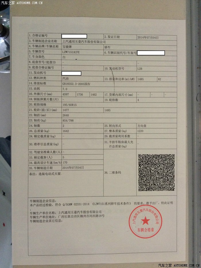本人一直关注630,看好通用系统的三大件的可靠性,10万以下自主车型性价比本人认为最高,做工可媲美某些合资车型,2014年8月6日接到宝骏管家的提车电话,冒雨赶往4S店,苦逼的是出门的时候没下雨,等我到4S店时简直是倾盆大雨啊,当时汽车城入口积水到膝盖,心想肯定提不了车,就先办下手续,在4S店选了些装饰品,坐套、全包围脚垫、后备箱垫、发动机护板、地盘装甲,4S店送了上牌,其实自己上牌也很简单。天公作美,下午雨过天晴,装完饰品,设定导航提车回家。