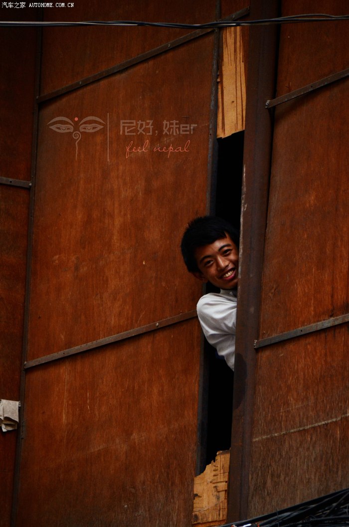 看这个角度,在二楼,外面是铁板,有这么大的缝隙,这是尼泊尔的高中,这个学生探出头来我招手示意他要照相,然后他就露出了大白牙,尼泊尔人非常的友好,认识不认识的,见面都会跟你说一句“namaste”