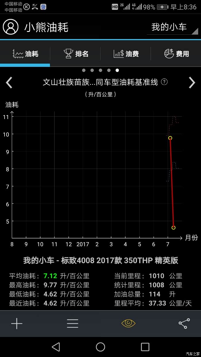 我加200块油行使340公里油表显示还可以行10公里我才加的油,不知道这油耗算不算不大,我加的92号油6.07一升,
