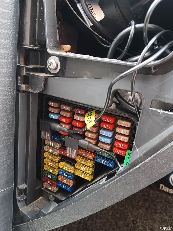 将线从A柱位置穿下来,用电笔测好,一根接常电一根接acc,还有根接地线,就近松个螺丝拧上就好了!