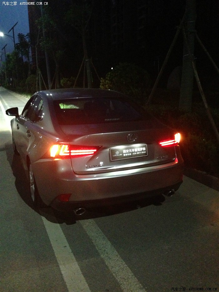 泪啊...选车也没什么纠结的,德国车不买,毛病多、费用贵(个人感觉);家里之前的德国车毛病都不少...迈腾我接手后就换过3次水泵,一次油泵总成(不过迈腾在同级别里面操控真是不错,开起来特别顺手)。到真的去店里看的时候,心里就两个车型了,一个沃尔沃V60、一个IS250。去沃尔沃4S的时候,两个小伙去的,问了下价钱后,人销售再没鸟我,再是感觉实车也挺小,底盘低...动力也打不到扮猪吃老虎的效果,然后就PASS了。去了雷车店里,看到IS F版实车,然后感受了内饰,就决定买锋尚了。到真的下订单过程有点复杂...家里是全部反对IS的,嫌底盘低,年前还差点把英菲尼迪QX50提了,最后软磨硬泡、说锋尚版没运动版前脸低,家里也看拗不过来我心思就答应了。