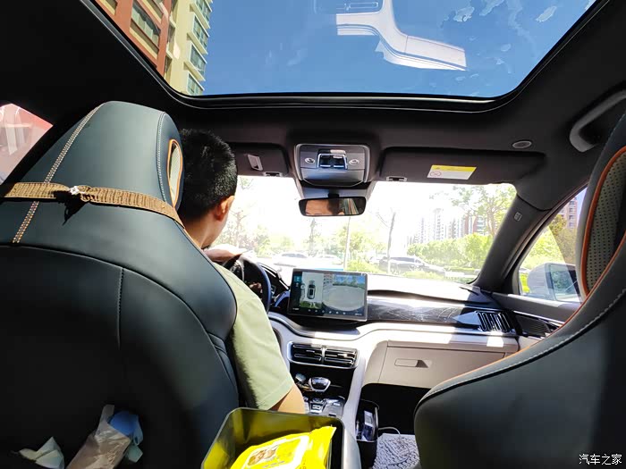 重点提一下大沙发的座椅与全景天窗,躺在上面看星星比较不错,身心舒适视野开阔,尤其行驶在郊区也是蓝天白云,鸟语花香,周围一派绿意盎然的景象,深的家人的喜爱,尤其宝宝游玩睡觉两不误~