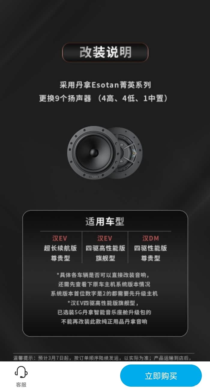 这套丹拿就是官方商城汉原厂升级套件 比亚迪让丹拿代工生产的 喇叭上没有标注系列 但官方资料上看应该是Esotan系列 也是丹拿入门系列汽车喇叭