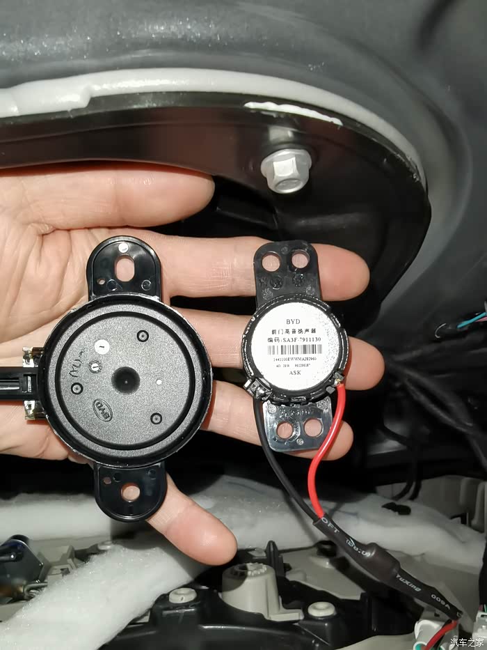 宋Plus DMi改装这个汉原厂丹拿升级套件要注意 除了四门的低音喇叭是原装位以外 其他四个高音和中置喇叭螺丝固定孔都对不上 需要对安装位置做改造才能固定 需要有一定的动手能力和工具 否则建议去汽车改装店付费改装 本文教程仅针对有改装经验的人供参考
