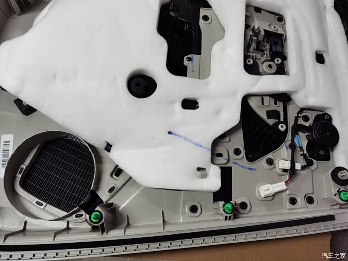 打开门板后摘除拉手连线和门灯 升窗器 喇叭 后备箱开关等插头的接头 将门板分离 便于后面切割操作