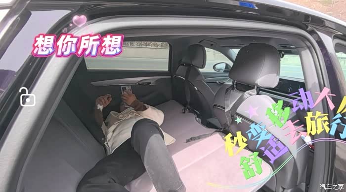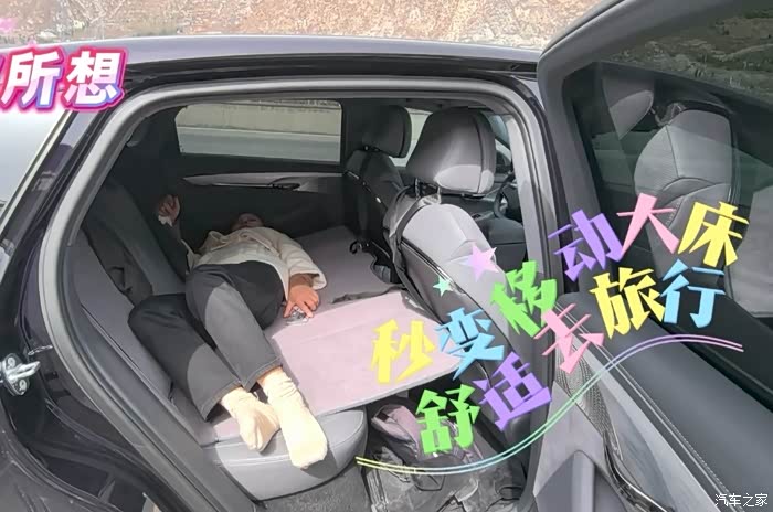 这是后排折叠床垫,收纳非常方便,铺开只需要2分钟搞定,绳子一挂打个活结就ok了。这个材质没有异味,颜色也跟我的车很搭,同一协调就不显得叉眼,而且夏天来了车里开个空调睡个午觉非常方便。