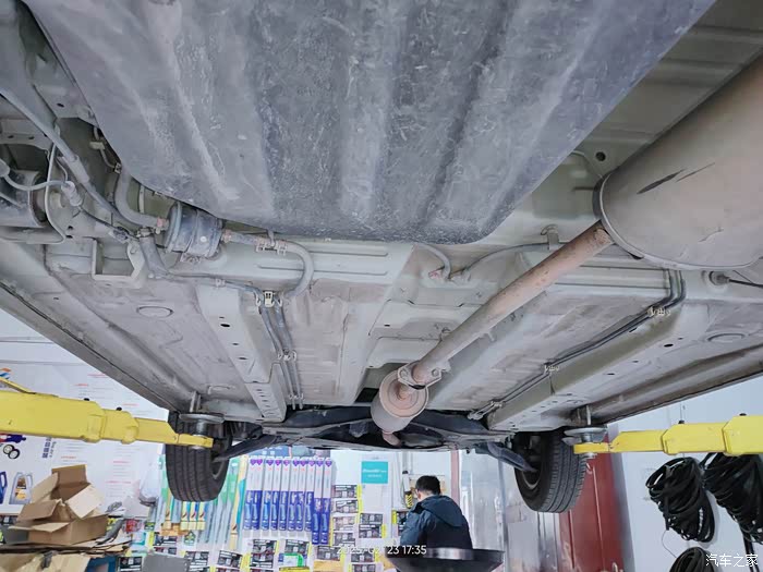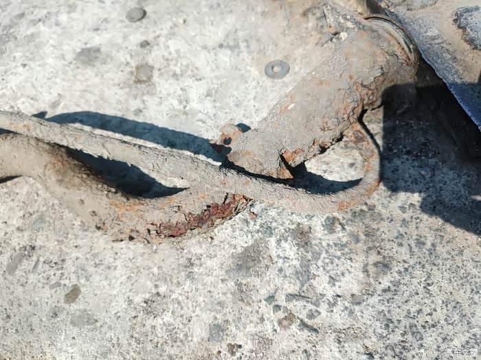 上架子,之后看到了一些汽车底盘的腐蚀,尤其是两侧底盘。