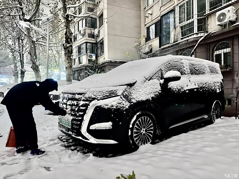 据说这次下雪济南市政一晚上安排三万人清理路面,一百多辆扫雪车,所以一早路面几乎都是干净的,没有太多积雪,但是下雪之后有些路段会结冰,尤其是小路和桥下。换上四季胎后D9起步和刹车都比较线性,没有那种突然打滑的感觉,但该慢还是得慢,雪天再稳的车也不能逞强。