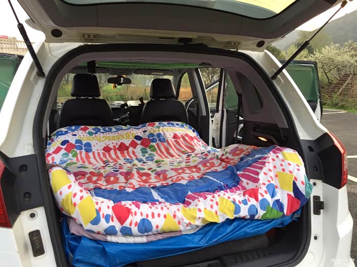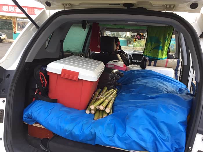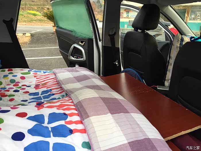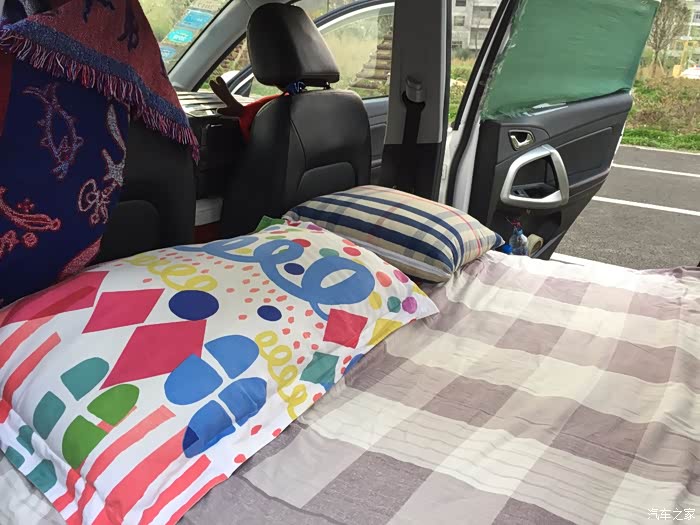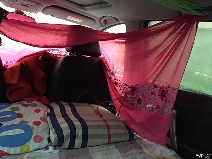 ,我们只在后排贴了窗帘,所以睡觉时我会用围巾尽量遮挡可能来自前排的目光。这样的方法我们用了很多次,最近上网买了一副简易窗帘,下次出游就会用上,车内会更整洁一些了