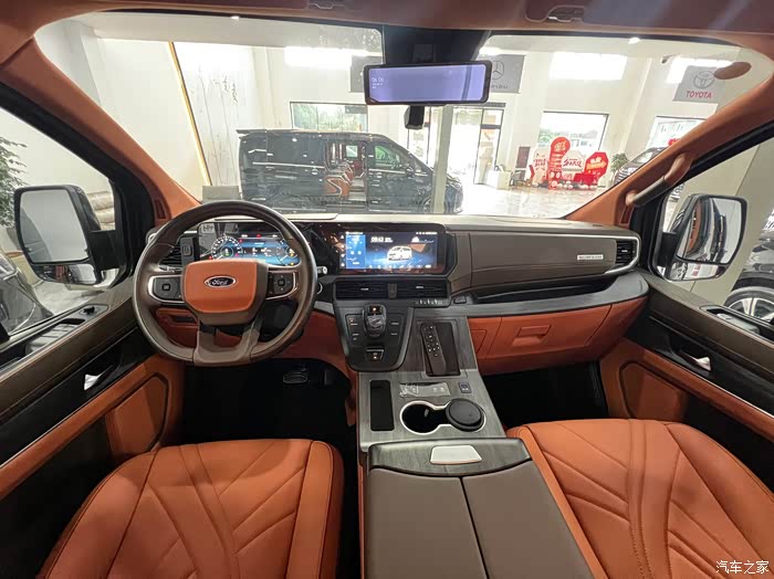 在科技娱乐配置方面,福特黑武士沃森威尔巅峰版同样表现出色。搭载的24寸智能液晶中控屏,集成了无线网络、手机互联、智能办公等多种功能。顶部的高达顶灯及氛围灯,为车内添加氛围感。220V外接电源 后排的空调调节 主副驾驶座椅背后的小桌板等等。