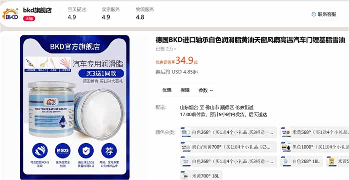 嫌太贵,于是自购德国原装进口BKD白色润滑油,店家把手套,注射器,毛刷(给门铰链或其它地方涂油),小勺(取油至注射器)都一并配好,省心。
