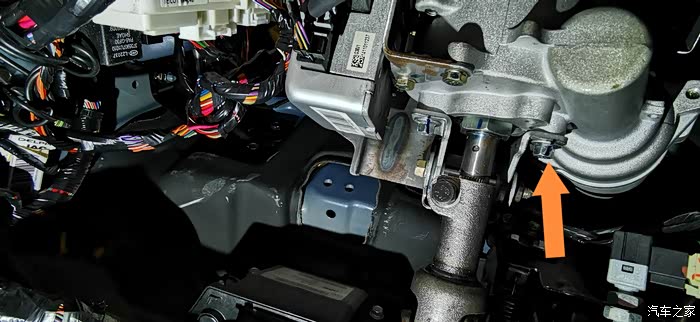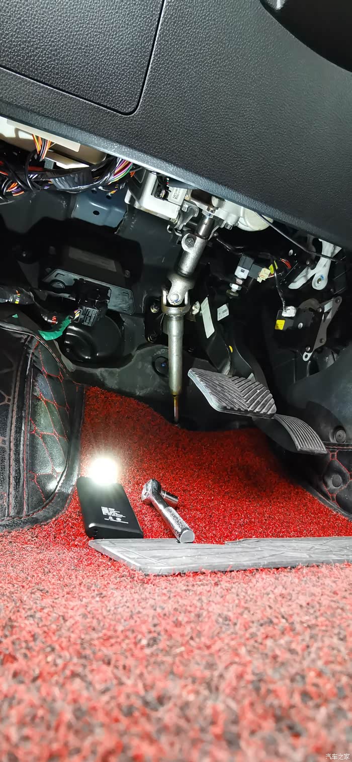 果然,专业的就是不同,师傅在主驾俯卧下去,同时要我帮忙把方向盘向前挡玻璃方向抬起,好让偏位的孔对齐,完美上好螺丝!
