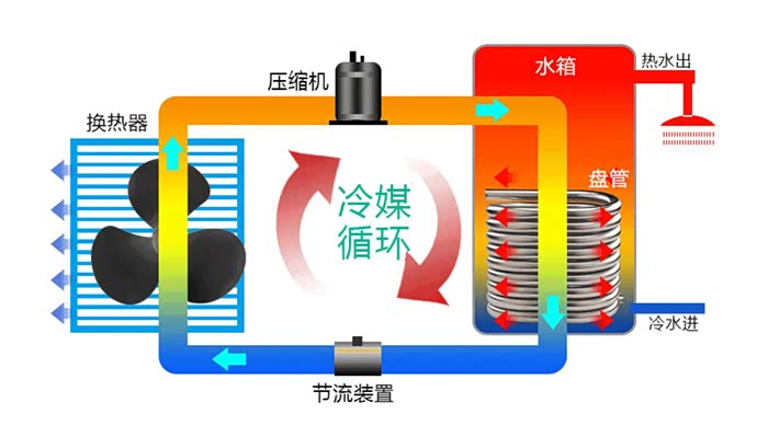 这辆思皓爱跑全系都搭载了智感热泵空调2.0,这也来到了咱们今天的第二个知识点。热泵空调,热泵空调使用完全不同的解决方案,你可以将其理解为水泵的原理,它是热量的“搬运工”,可以把低温的气体或事液体的热量吸收出来传递到工质内,再通过系统内对工质的压缩使其升温,最终将高温工质通过冷凝器和车内空气进行换热,实现暖风的功能。整个过程中,电池的电能只应用在“搬运”热量上,从而达到省电的初衷。这样一来,再配合上整车的智能温控系统结构,这辆车的续航表现就可以得到了进一步的提升,从而做到更实的续航表现。