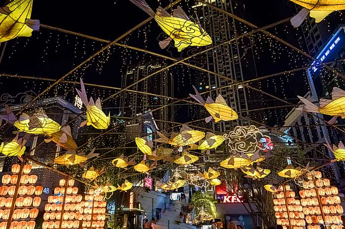 从南滨路入口一进来就可以看见,星星点点叹为观止,用广角镜头拍,效果一级棒。其实这里是一家少数民族纸质工艺品店,有漂亮的灯具、扇子、明信片等,给朋友带点小礼物,棒棒哒。