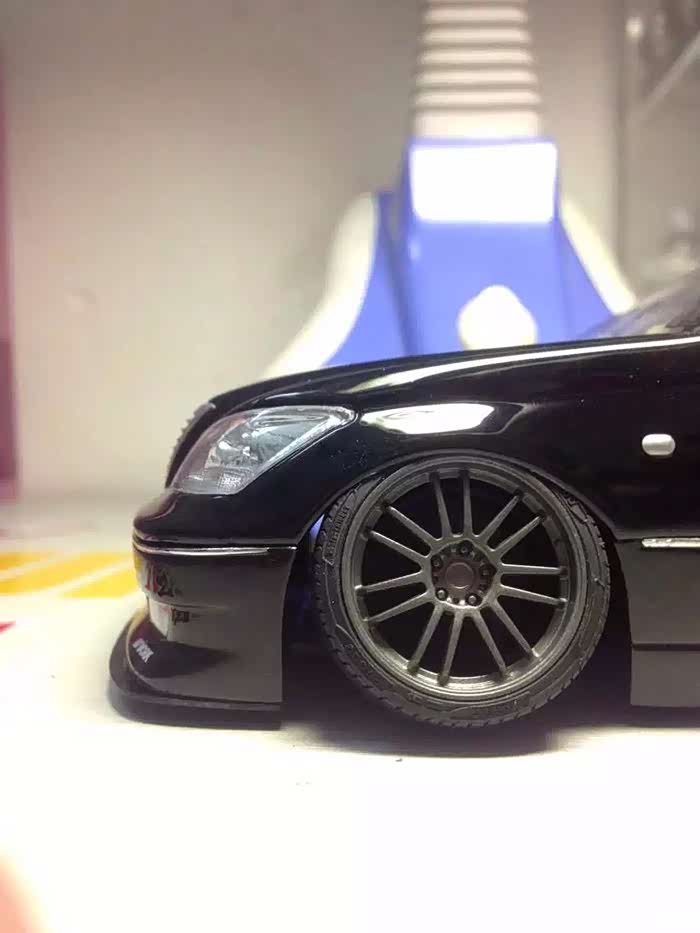 。拿到第一件事就是把原厂的轮毂和车轴都拆了,然后改了青岛社的轮毂接头,用AB补土来固定,方便日后跟换轮毂。