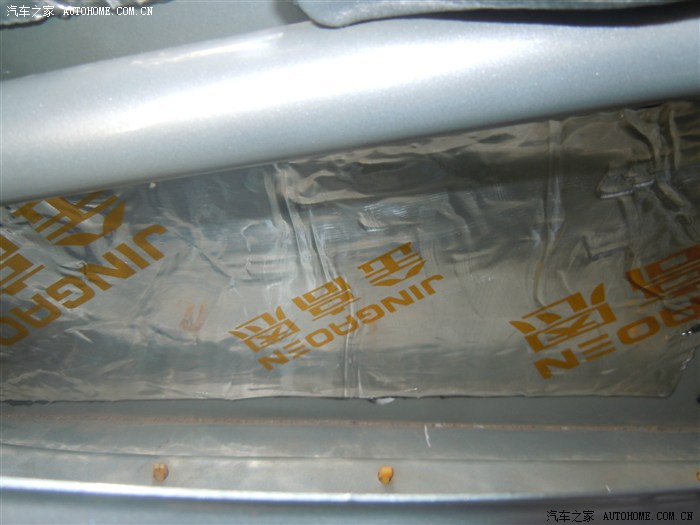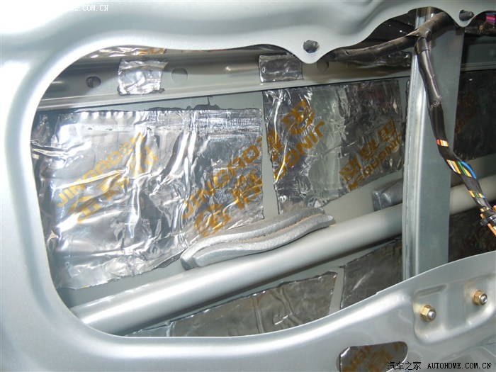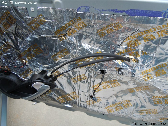 都贴好压实后就可以上钣金内侧的整块的大止震板了,这时刚才撕下的防水膜就派上用场了,