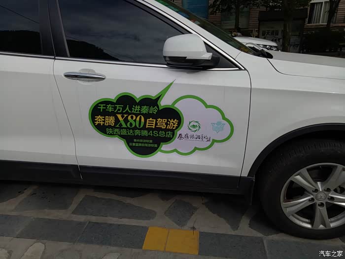 二、出发篇。进入夏至后,西安瞬间进入烧烤模式,燥热的太阳炙烤着每个人,焦躁不安。陕西奔腾车友之家X80(qq群343552346) 有天突然发布消息,车友之家和盛达4S店组织去秦岭深处自驾,名额有限!在群友茂哥的提醒下,直接提交资料,报名参加!报名成功后就是各种等待,终于到23号啦,加油、洗车!悲剧的是,刚把油加满,手机就收到新闻说是24号0点成品油降价......24号一大早就把磨叽的媳妇和儿子都拉起来,直奔西安一汽奔腾盛达4S店,一眼就看到一直群聊而未曾见面的金虎,还有群里朝哥、茂哥等都未曾谋面的车友,招呼过后,贴车标,领取物件,准备出发!