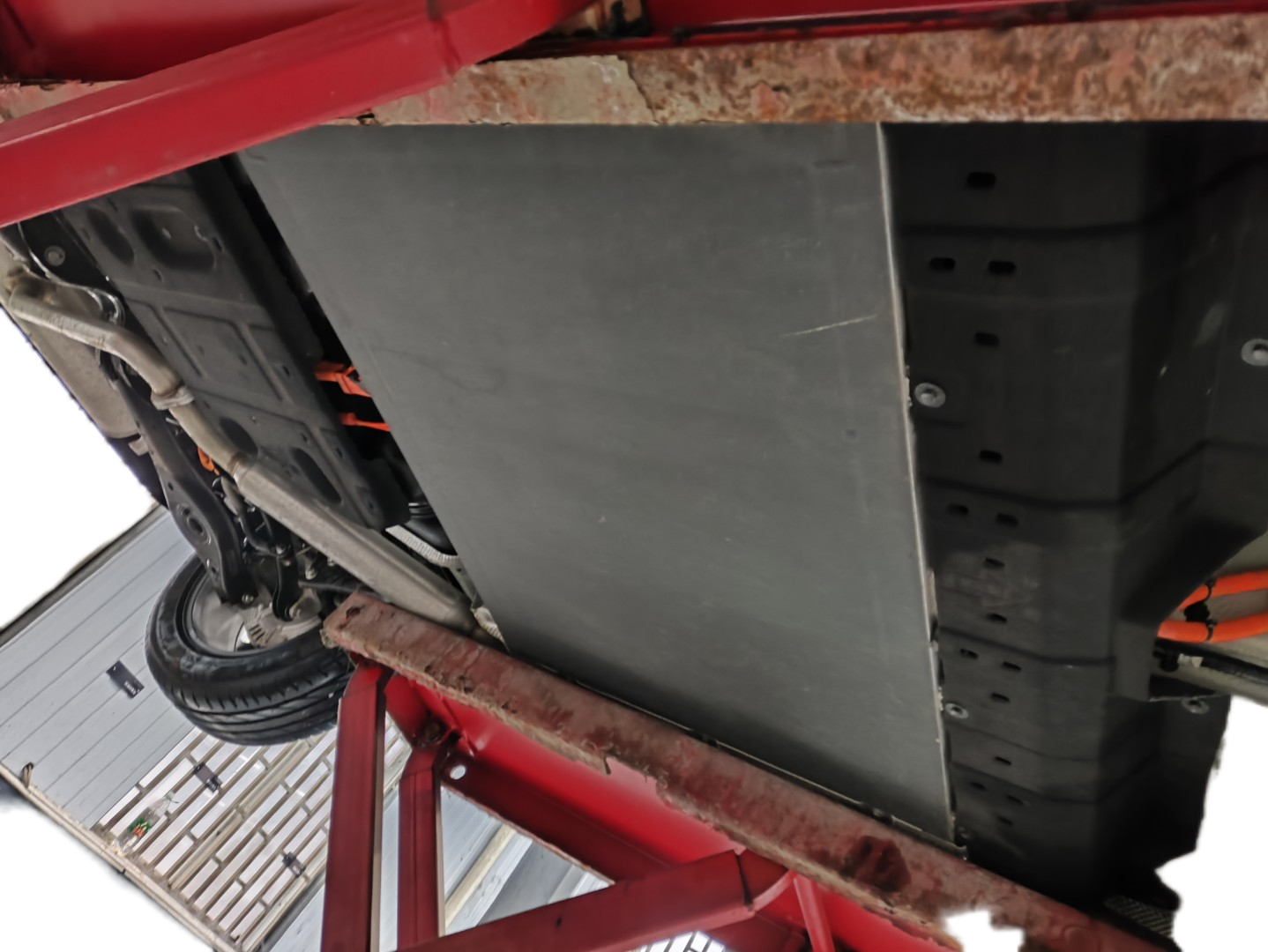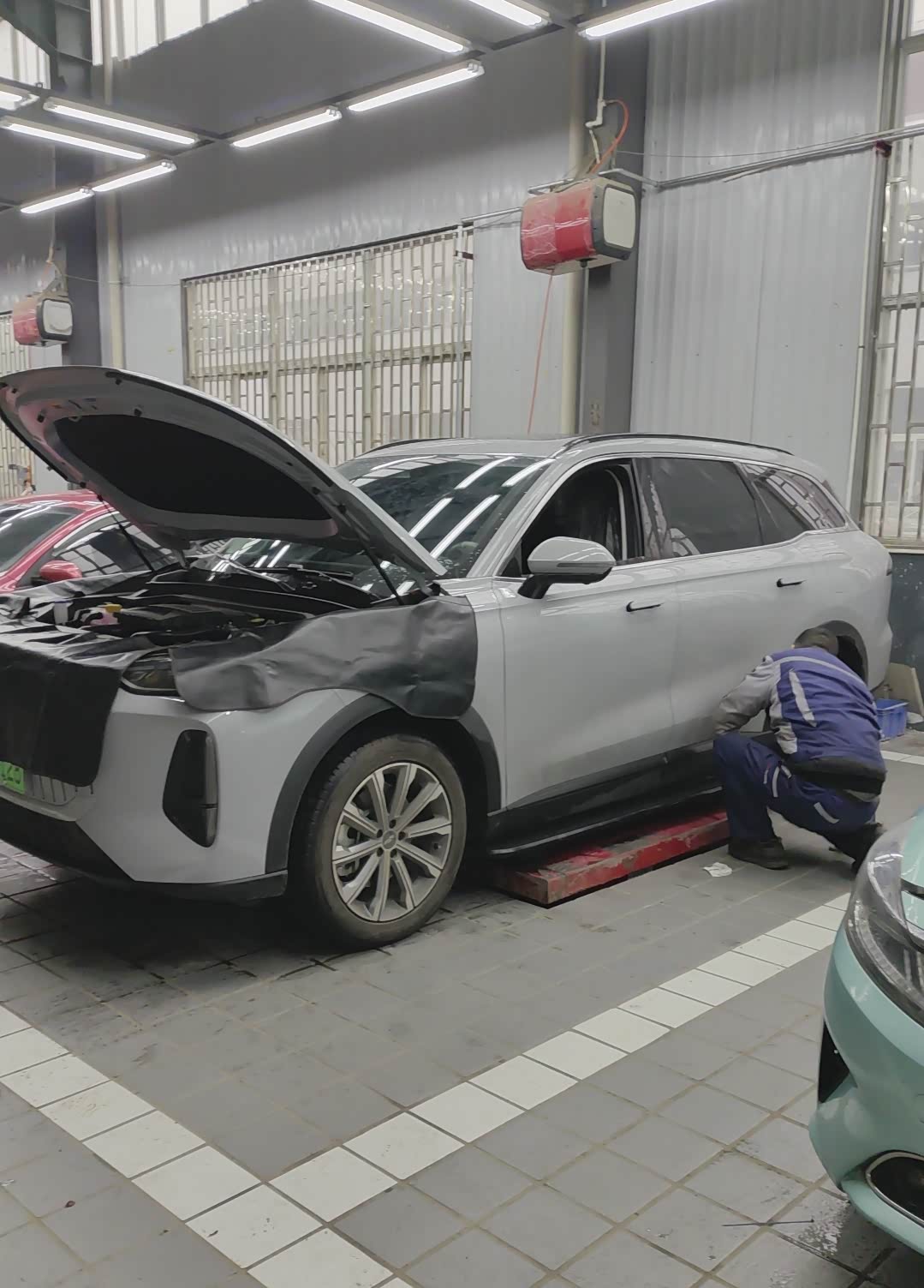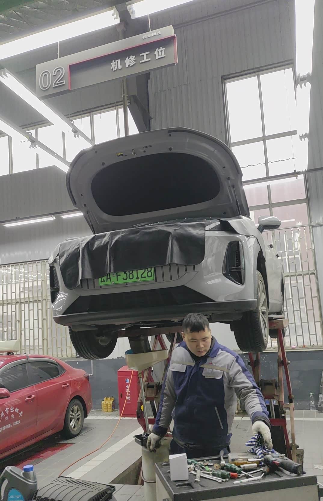 接着,师傅操作举升机,将我的风云T9缓缓升起。从车底,我看到了它扎实的底盘结构,师傅仔细检查了底盘的各个部件,包括悬挂、电池护板等,确认没有剐蹭和损坏。