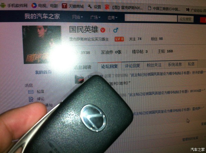 提车到现在,已经开了有一段时间了,车子越开越好开。几天就适应了奇怪的是,我开了几天的NX,再去开我买了3年多的小白科鲁兹的时候,竟然会觉得科鲁兹里面还有皮子的臭味,我彻底晕倒。平时开了那么久都怎么感觉到啊。话说雷克萨斯车内的气味真的算很小的了。