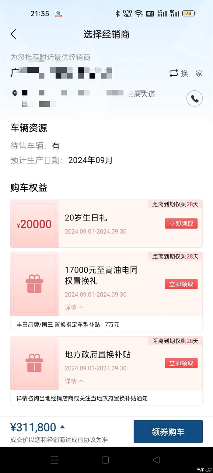 刚看了下广丰云APP,1.2万的置换补贴,1.5万的已旧换新补贴,还有个2万的20岁生日礼。合计4.7万。