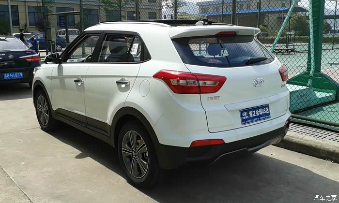 其实提车已经快半年了,真的是很迟的作业了.在IX25未在市之前,一直在关注CS75,觉得外观,配置都不错,右侧盲点检测功能挺实用的,然后就在等降价了,后来在网上看了关于75的帖子,说LED尾灯还有一段未点亮,最主要的是批大肠(排气管)外露太低,影响通过性,后来去店里看了实车,外观确实大气,大肠露在那里确实不好看,还影响通过性,正在纠结的时候,IX25要上市了,在网上光看外观,哇噻,就是它了,老婆也说好看,因为想要一辆SUV,正有这个范,虽然比75小,但想想平时就上下班和接小孩,大小也够了,本人块头不大,停车也方便,就把75PASS了.接下来就是价格的问题了,配置一对比,直接上1.6尊贵,钱不够,先攒呐,顺便看看这车的各个性能怎样.可是等啊等啊,就是等不到它降价啊,奇怪,看它销量也没其它同级别的好,纳闷啊,终于在等了快1年半之后,在今年的5.1前一天,把它给拿下了,优惠1W,全款落地16.1W.好了,废话不多说了,先上图,外观篇来