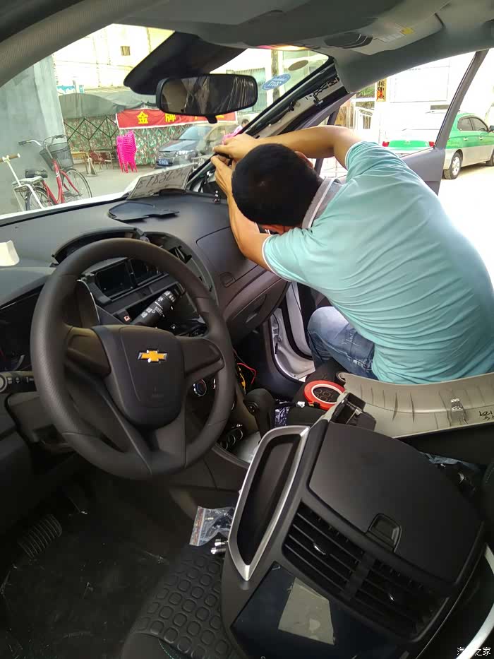 自己在网上买的导航,师傅正在熟练的给我装导航
