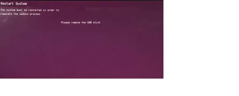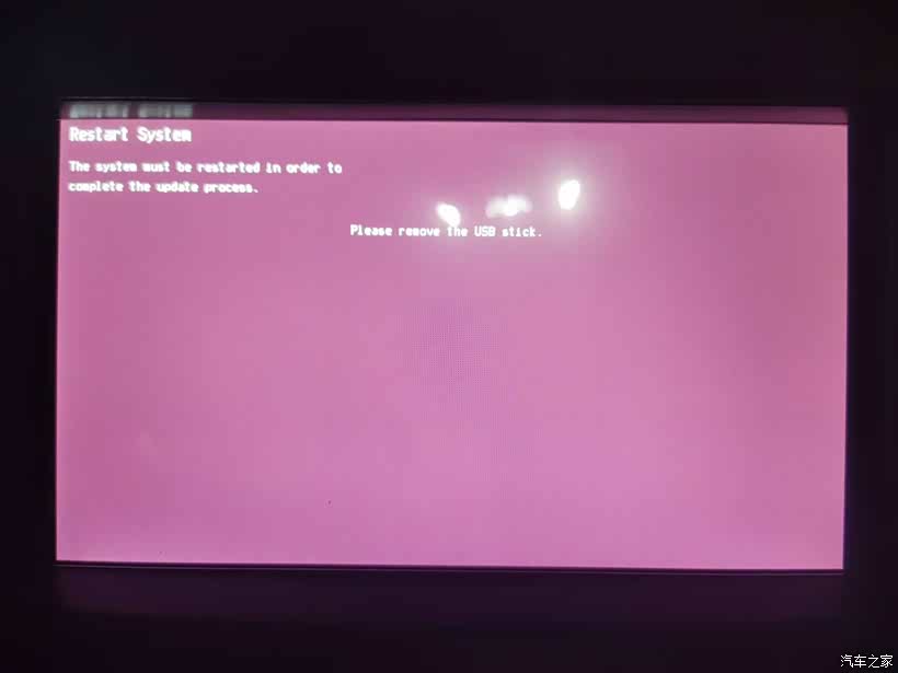 ⑤步:当屏幕进度条消失,并显示“Please remove has USB stick”字样,表示升级完毕。此时拔下U盘。重新启动车辆即可。