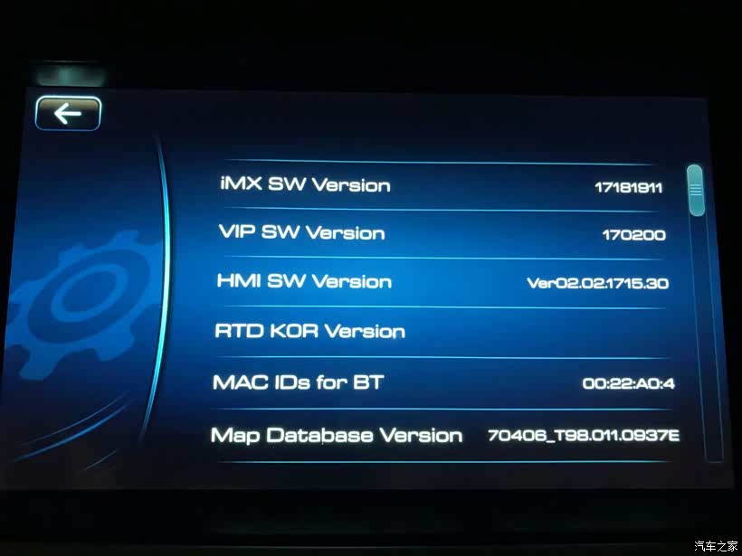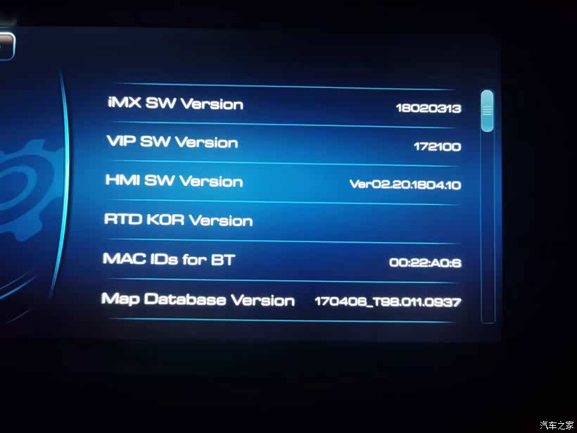 ⑤步:此时中控屏弹出英文后台界面,选择:”Software information“,查看“IMX SW Version”版本。