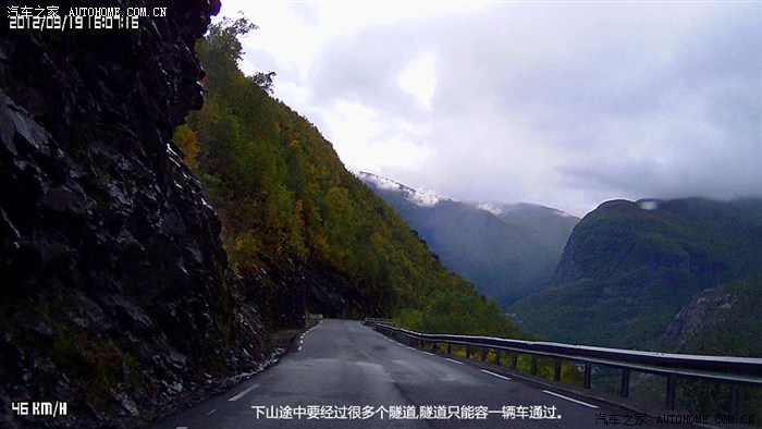 离开峡湾,也是一路经过很多隧道,和刚才下山的隧道不同,这次许多隧道都有几公里长。我看得这么窄的车道,开始我以为像中国多数的隧道那样是单向的,所以一直走在车道中间。走过几个隧道,一直没遇到对头车,更加加强我的想法。直到在一个拐弯处,突然看得迎面的车灯,才知道这是双向车道,连忙靠边减速避让,但对方却像没看见我那样,飞驰而过。往后遇到几台车也是这样,我靠,当地人的技术真不错!开了一天车,我没怎么休息,这时真的有点累了