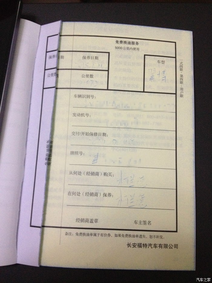 保养手册,被撕去的几页。这撕得也太不靠谱了,那分割线纯属被忽略掉了。