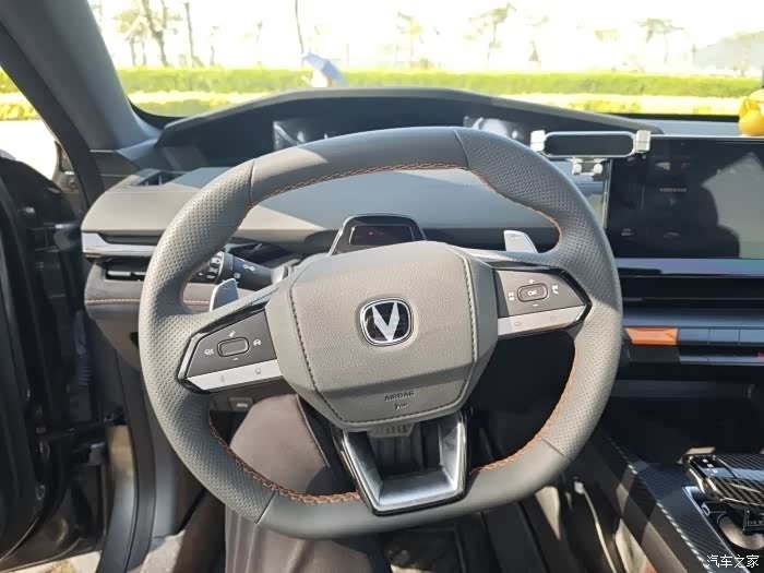 首先,让我们来看看方向盘。长安UNIV的方向盘采用了三辐式设计,造型简洁大方,手感舒适。方向盘上集成了多种功能按键,包括音响控制、电话接听、语音识别等,方便驾驶员在行驶过程中进行操作。此外,方向盘还支持上下调节,以适应不同驾驶者的需求。