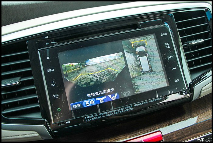 来看看全景摄像头的效果。嘿嘿!在车内,可以将车周围的情况看的是一清二楚啊!