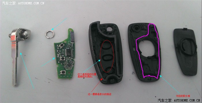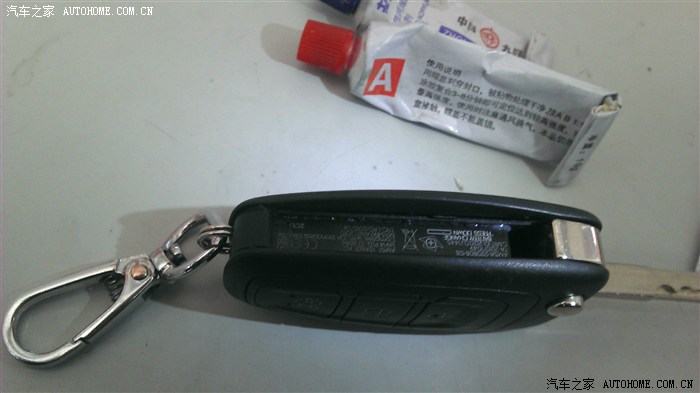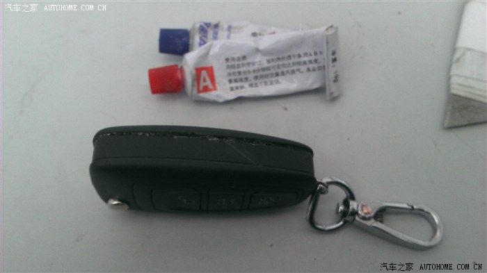 新福买了好几个月了,钥匙一直是穿在原来的钥匙串上的。开车时每次抬右腿是都能碰到挂着的其他钥匙,遥控钥匙自带的小圈又太小,试着拆了下,NM坑爹,竟然用胶水密封的,里面有个小卡扣掰开就断了,死活装不上,没办法,只能救助AB胶,发图给大家看看!!!!!!!!!