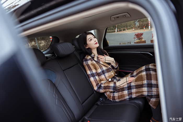 进入车内之后我发现小婉果然是“老司机”,直接调起了座椅和后视镜,这是一个很正确的做法!不过这里要说了,岚图FREE的座椅调节方式很多,前后高低还有靠背和腰部调整,总计有12项,像小婉这样人高却很瘦的身材也能找到合适的坐姿。