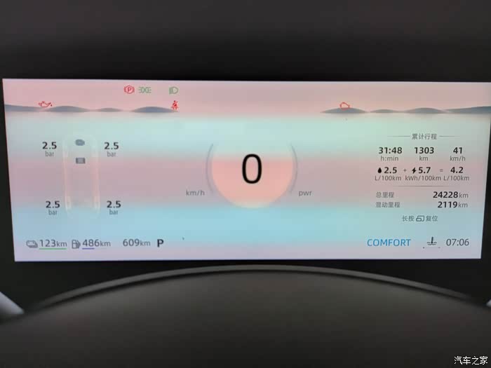 3、续航分享D7DMH配置的是21.4度动力电池+1.5L自吸发动机组成DMH系统,兼顾动力性能和能耗经济性。本人工作日每日实测110公里,使用纯电+舒适模式,全程空调,到家纯电剩余续航一般都30公里左右,实测纯电续航在140+公里。