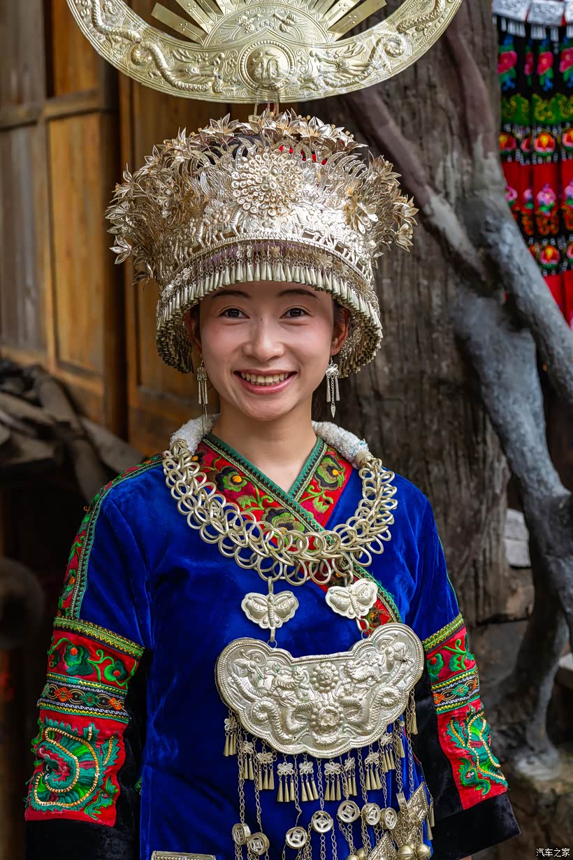 短上衣、百褶裙, 繁复精美的银饰,手中的牛角杯里,装满为尊贵客人准备的祝福酒