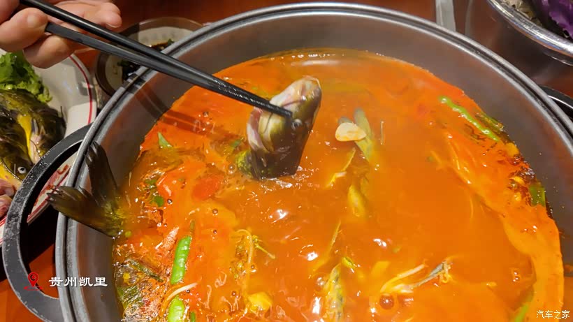 回到凯里市区吃的苗寨特色---酸汤鱼,味道挺不错,性价比也挺高。邻桌的本地人热情教我们如何吃更美味。