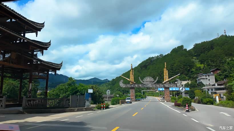 沿着市区的金山大道开了没多远,就上了国道G243,越往山里走,民族风情风情越来越浓厚,山坡上随处是民族特色的建筑,以寨子为中心的特色景区随处皆是,道路两旁很容易就能看到身着民族服装的人们,真有种进入视频画面般的感觉。