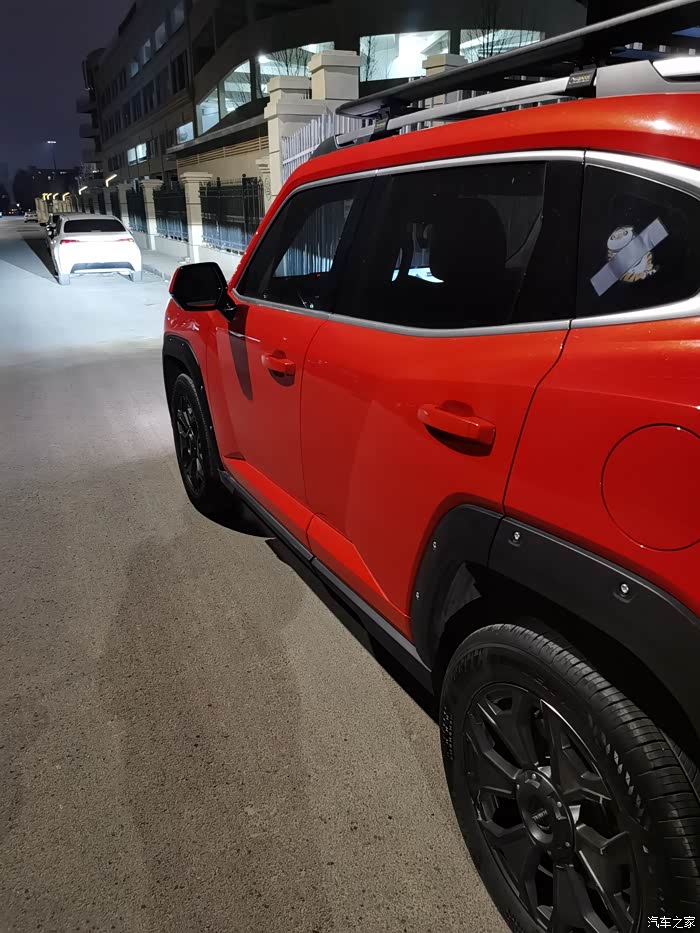咱就说这个大红色看上去是不是非常的喜庆,为什么一般人就不会选择呢,我觉得应该是怕把握不住吧,这款车我没做太多改变,只是把轮毂做了一个黑化处理,我哭的我这样和我的这个大红色车身更加搭配,我还给我的这辆二够混动按了一个行李架,这个是为了我以后自驾游做准备的。