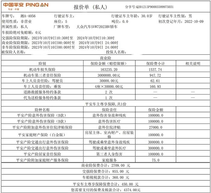 5.保险费用:一直是买的平安保险,卖保险的也比较熟了,第一年新车给的价格也不高,4000出头的样子。一直没有出险,第二年买的时候便宜了一些,只花了3639元。