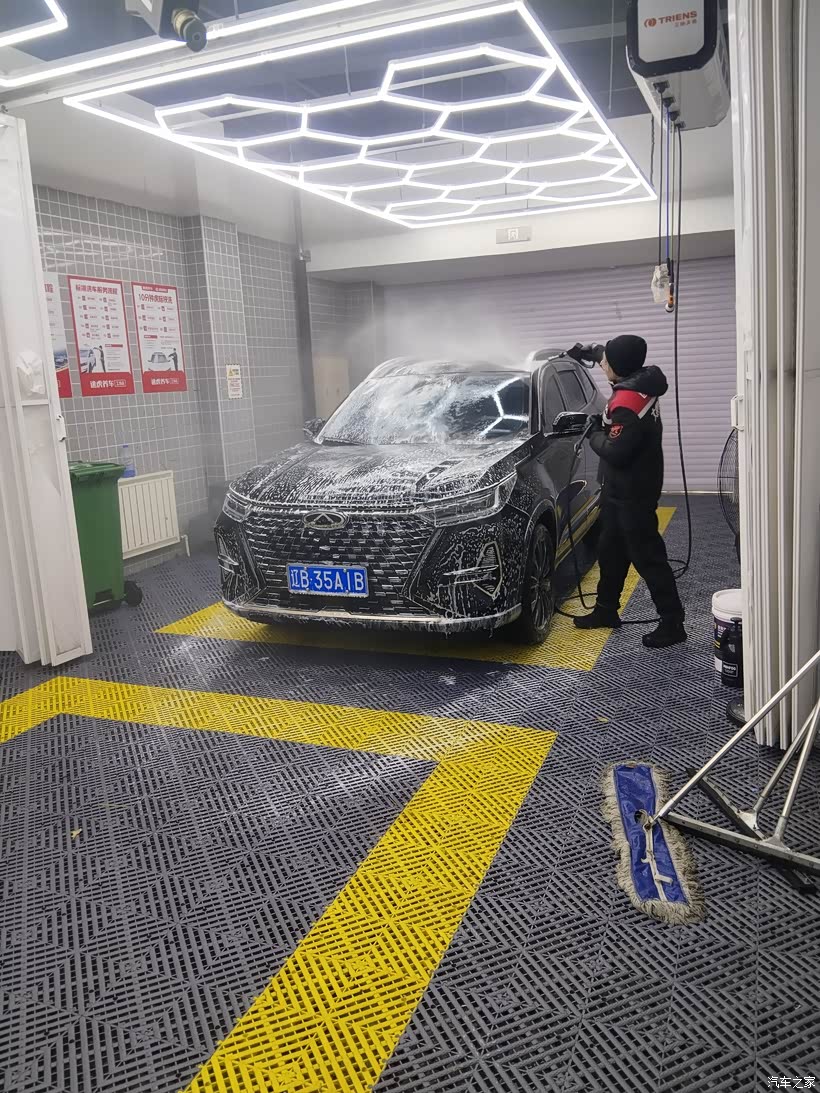 雪后及时洗车是瑞虎8 Pro冬季养护的关键,融雪剂附着在车身19英寸轮毂、底盘悬架和点阵格栅缝隙处,长期不清理会造成轮毂氧化、底盘生锈,还会堵塞格栅影响散热。洗车时务必避开早晚低温时段,选中午气温稍高时操作,且全程在室内完成,切勿用冷水直接冲淋发动机舱,待发动机冷却后再清洁,避免冷热交替损伤部件。