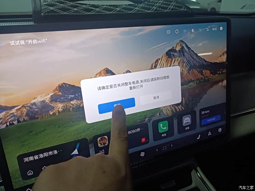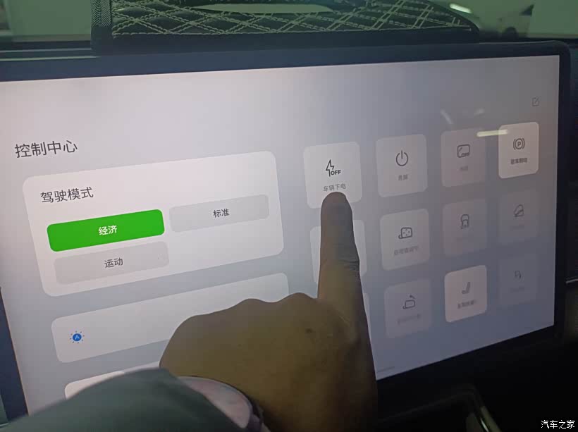 上车,中控室下拉菜单,点击车辆下电