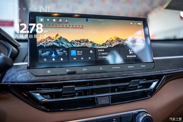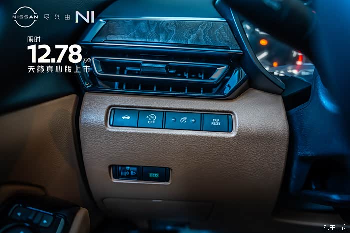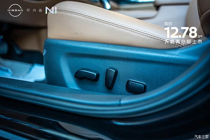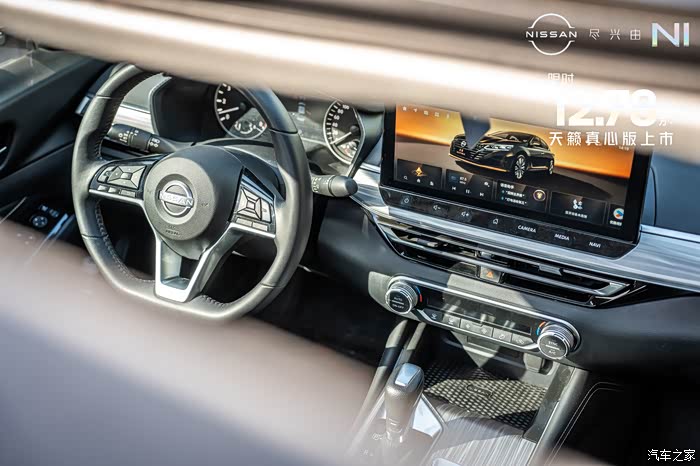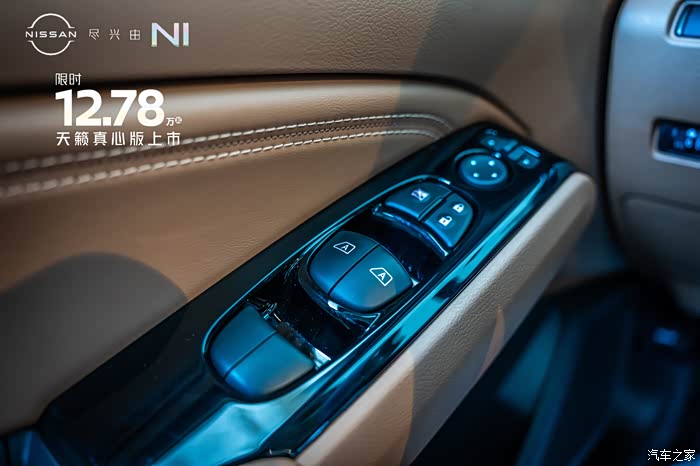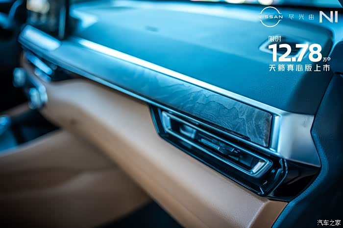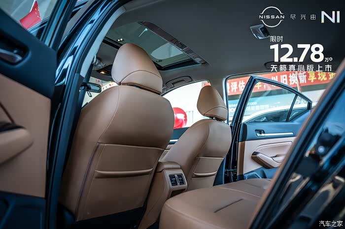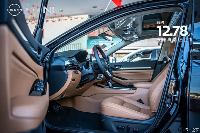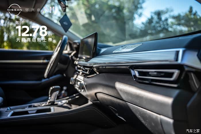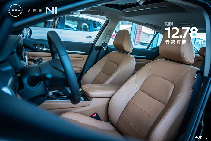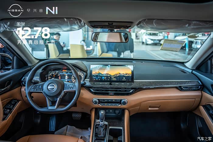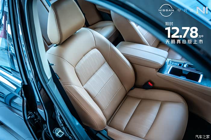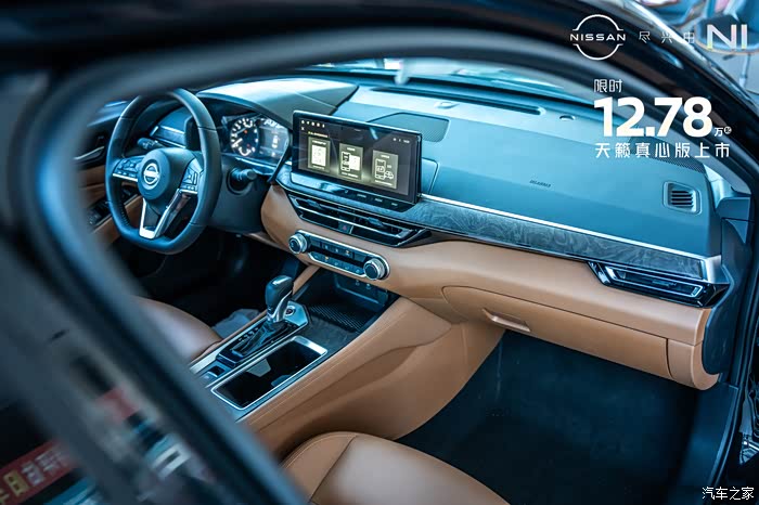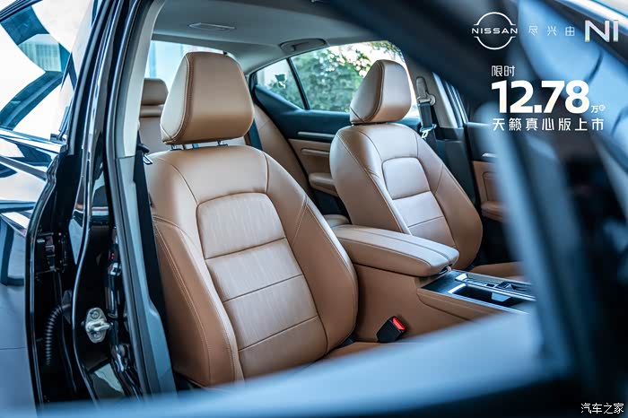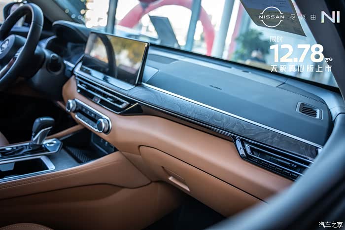 来到内饰部分,可以看到天籁真心版本的内饰用料和工艺都比较精细。内饰颜色有黑色跟棕色以及纯黑色两种选择。