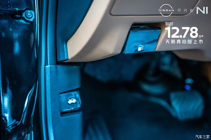 油箱盖儿的开启方式是在方向盘的左下方,机舱盖是设计在了A柱上。